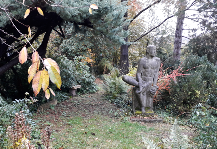 Mit diesen Worten wollte Altenbourg Lothar Lang zu einem seiner Geburtstage gratulieren. Er wußte, was sie bedeuteten, denn auch er kannte die Freuden eines Sammlers. Das konnte bereits ein Fußgänger bemerken, der die Spinnbahn entlang an Altenbourgs Garten vorbeiging und den Blick über die weißen Eisenstäbe des Zaunes schweifen ließ. Über eine niedrige, mit Stauden bestandene Böschung sah er hinauf auf eine aus dichtem Blattwerk von Buchs und Eibe zusammengewachsene Blätterwand, aus der hell das Bildwerk eines sitzenden Jünglings von Hans Mettel hervorleuchtete. Es war aus einem sehr dauerhaften Muschelkalkstein, aber die Nase war abgeschlagen, eine Verletzung, die der Figur von „rohen Kulturfeinden“ während der Herrschaft der Nationalsozialisten in den dreißiger Jahren zugefügt wurde, als andere Werke Mettels als „entartet“ beschimpft und beschlagnahmt wurden.